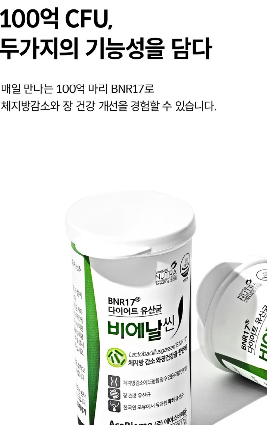 우리 몸은 각자 다릅니다. 그래서 맞춤형 유산균이 중요합니다. 사람마다 장내 유익균의 비율과 종류가 다르기 때문에, 자신의 몸에 맞는 유산균을 선택하는 것이 다이어트의 성공 여부를 좌우합니다. 김희선 다이어트 유산균 비에날씬은 100억마리 BNR17로 장 건강과 체중 감량이라는 두 마리 토끼를 한 번에 잡을 수 있게 설계되었습니다.