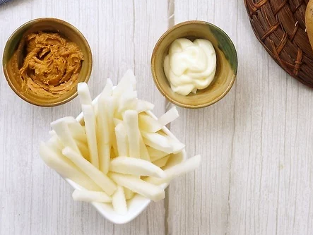 당근처럼 히카마도 길쭉하게 잘라 찍어 먹을 소스와 함께 내기